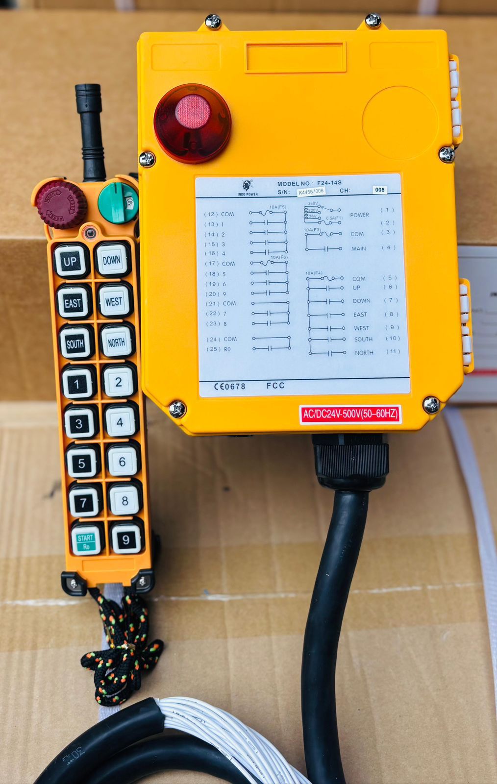 The Power Plus F24-14S is a comprehensive "Industrial Grade" wireless remote control designed for extensive crane operations that require numerous functions. This Single Speed model is ideal for machinery needing multiple auxiliary controls alongside standard movement. Indo Power imports this advanced yellow series model directly to offer Indian industries a versatile, high-capacity solution at a wholesale price.